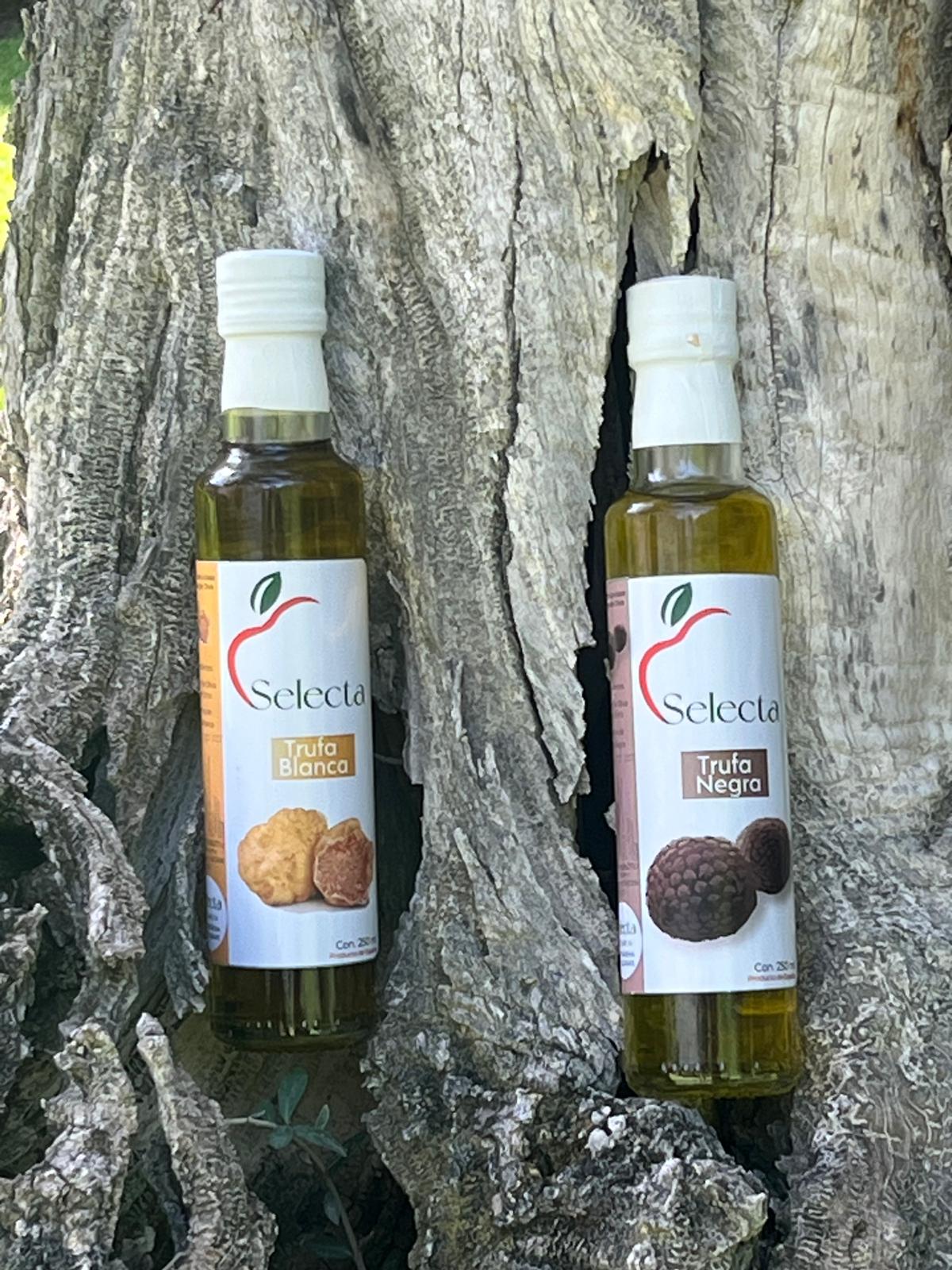 Aceite de oliva virgen extra aromatizado con diferentes sabores naturales.