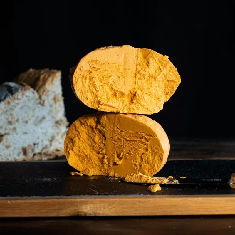 Queso Afuega´l Pitu D.O.P. de trapo rojo, elaborado con leche de vaca pasteurizada amasada con pimentón. Sabor ligeramente acido, picante y poco salado. Pieza - 400 gr